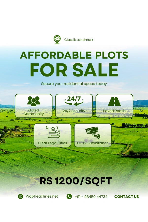 Located in the thriving town of Bangarpet, Classik Landmark provides excellent connectivity to major transport hubs, including the Bangarpet Railway Station, and is close to schools, hospitals, shopping centers, and entertainment options. Enjoy the convenience of urban living while surrounded by a peaceful and secure environment.